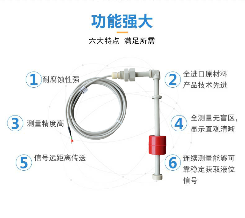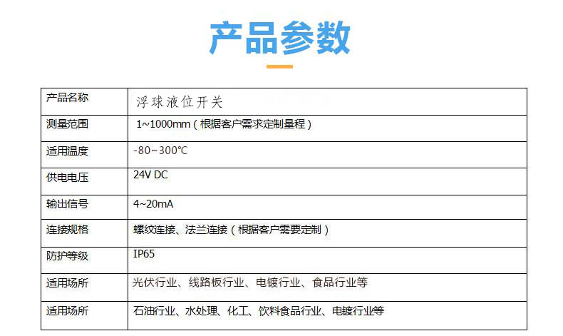 浮球开关不含导致故障发生和波纹管、弹簧、密封等部件,而是采用浮球驱动开关内部磁铁,浮球开关的简捷的杠杆使开关瞬间动作。