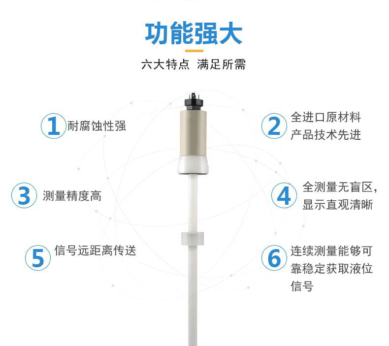 高温型磁致伸缩液位计采用独特的聚偏二氟乙烯(PVDF),对比其他材料的优势在于PVDF是一种高强度耐腐蚀和耐高温的物质,同时还具有很强的耐磨性和抗冲击性能。较高可测量高温为120℃~200℃,在PVDF在材质行业中处于领先地位。