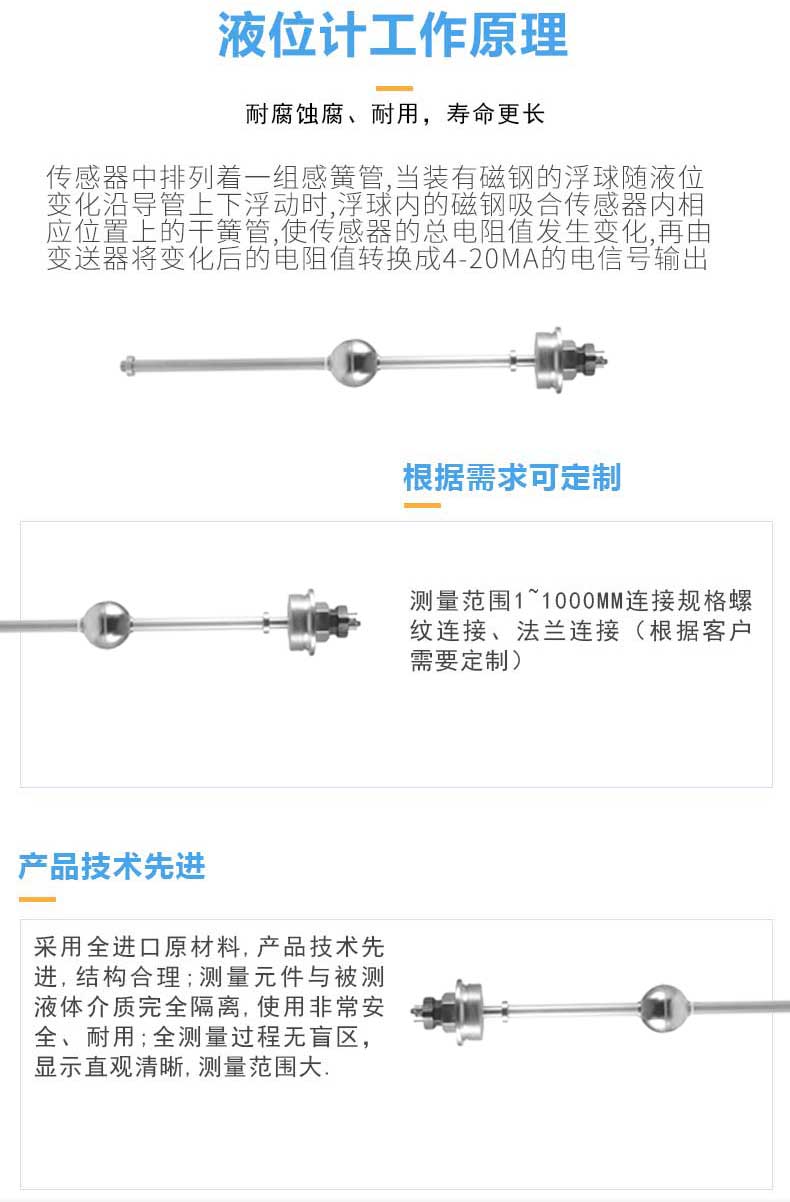 2. 连续检测液位重复性高;