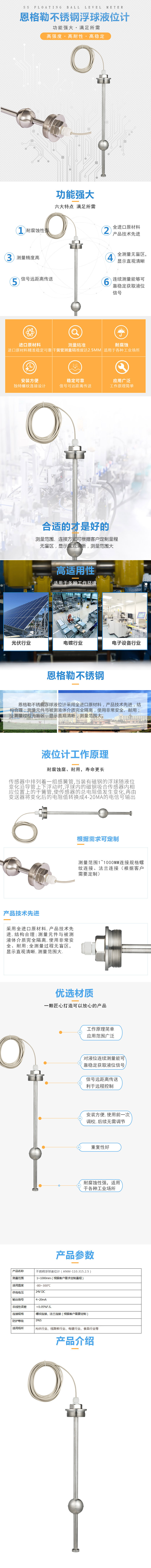 ENGLER不锈钢浮球液位计是一种安全可靠、使用方便、结构简单的液位计,体积小、速度快、工作寿命长,具有抗负载冲击能力强的特点,其在造船、造纸、印刷、发电机设备、石油化工、食品工业、水处理、电工、燃料工业、油压机械等方面都得到了广泛的应用。